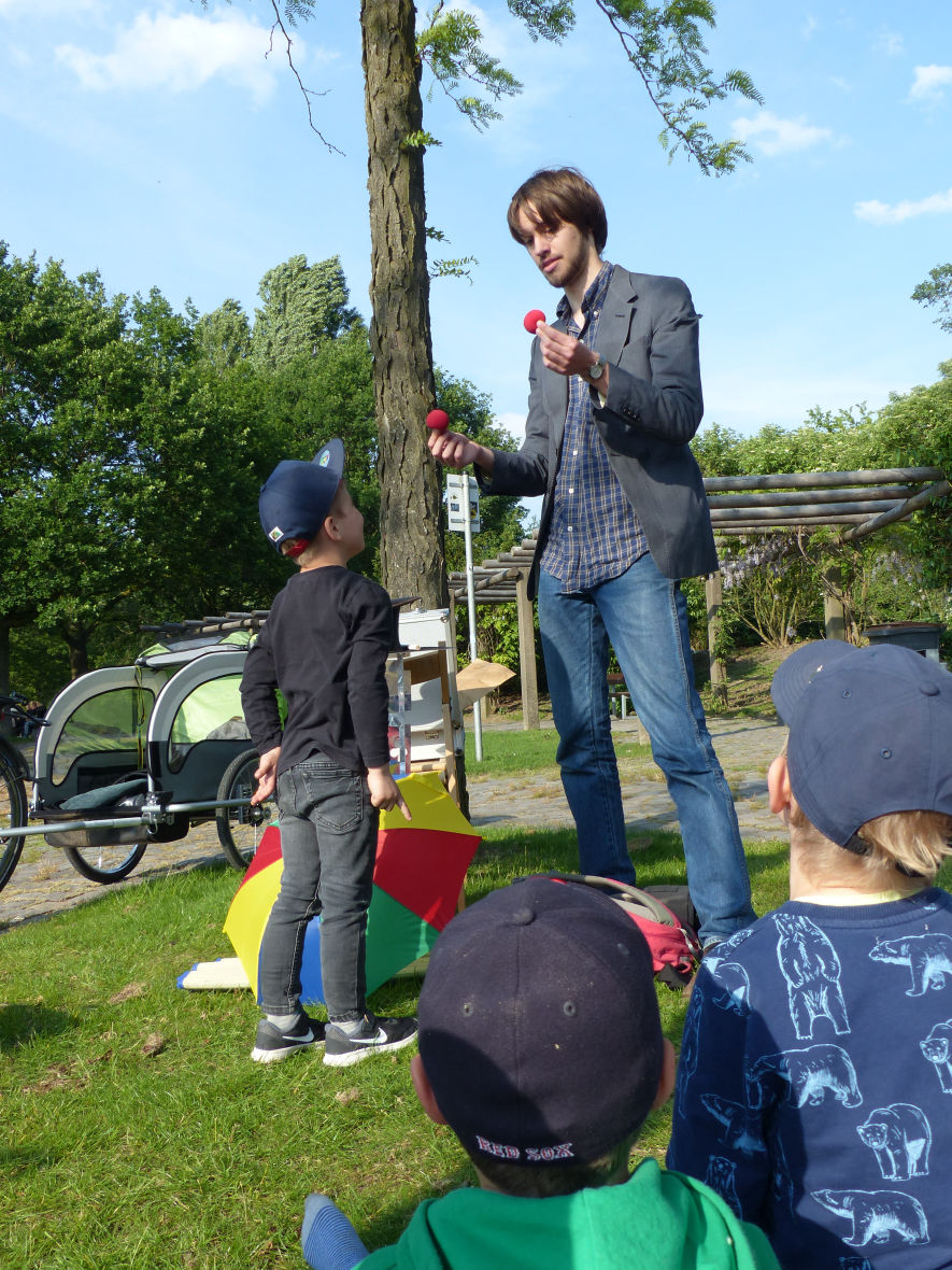 Es stellt sich heraus, Zauberei benötigt nicht nur viel Übung, sondern manchmal auch eine helfende Hand. Daher ist es ein großes Glück, dass dem Zauberer eine bunte Schar kleiner Helferinnen und Helfer gegenübersitzt, welche doch wohl über ihre ganz eigenen Zauberkräfte verfügen und allzeit bereit sind tatkräftig mitzuwirken. Durch die Mithilfe des kleinen Publikums lösen sich die größten Missgeschicke buchstäblich in Luft auf.